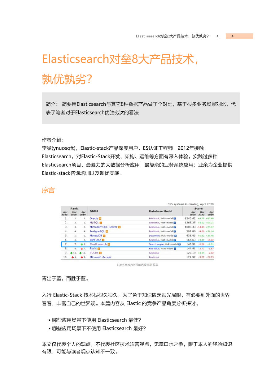 | 32 阅读Elasticseach 从做搜索引擎开始,到现在主攻大数据分析领域,逐步进化成了一个全能型的数据产品,在 Elasticsearch 诸多优秀的功能中,与很多数据产品有越来越多的交叉竞争,有的功能很有特色,有的功能只是附带,了解这些产品特点有助于更好的应用于业务需求。