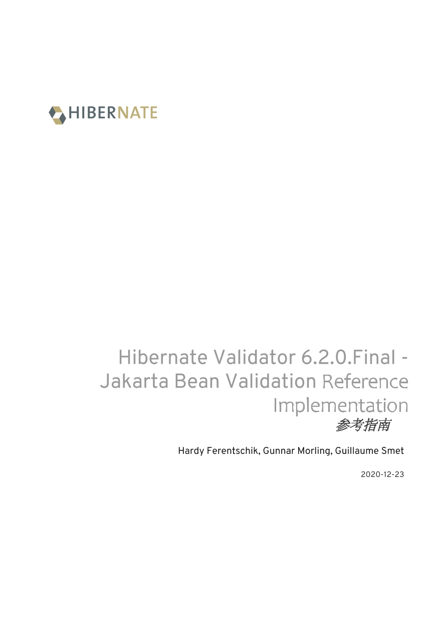 | 27 阅读Jakarta Bean Validation 2.0 定义用于实体和方法验证的元数据模型和API。默认的元数据源是注释,能够通过使用XML覆盖和扩展元数据。API不受特定应用程序层或编程模型的约束。Hibernate Validator是Jakarta Bean验证的参考实现。