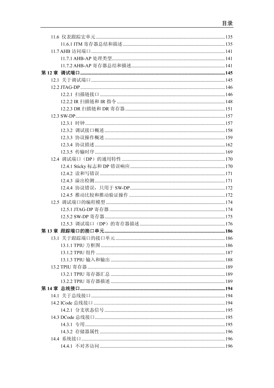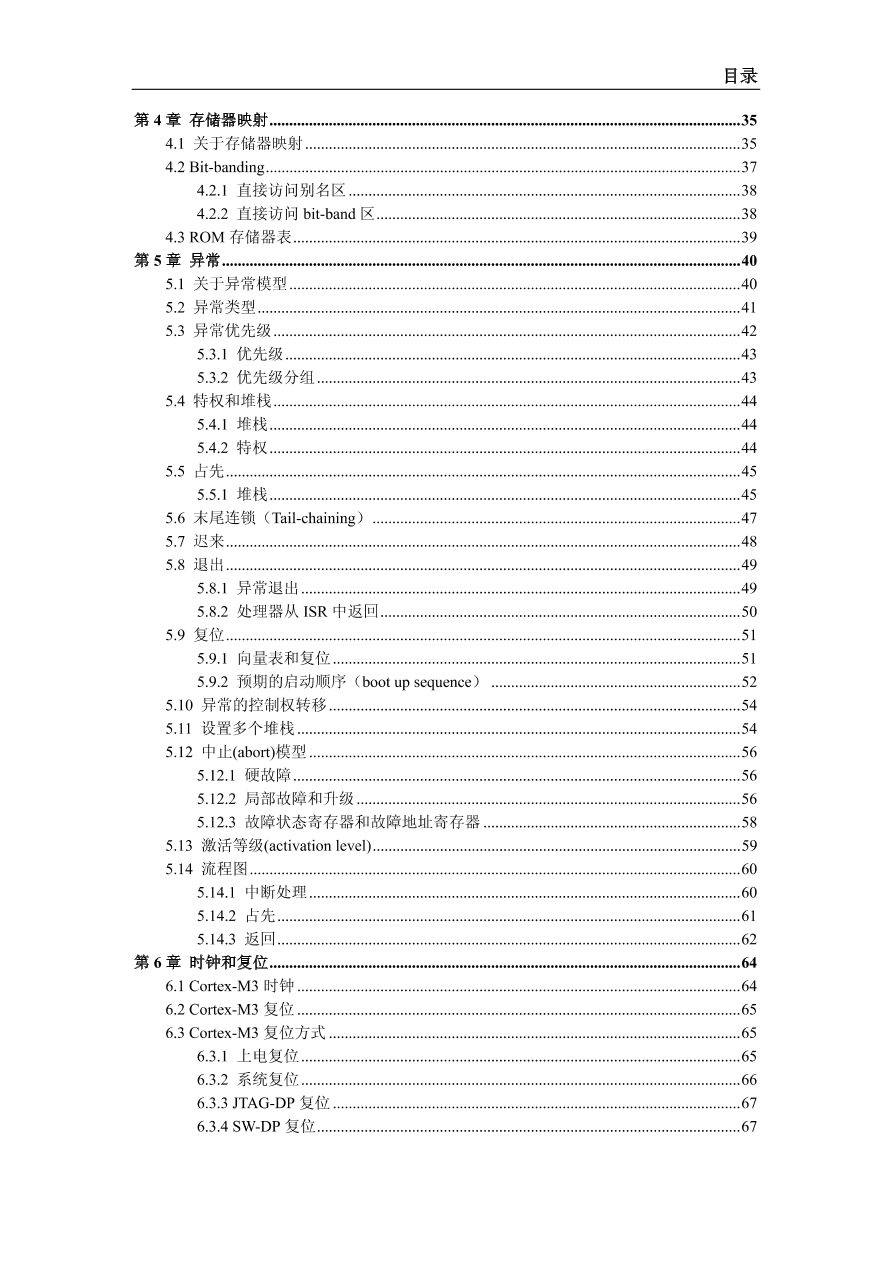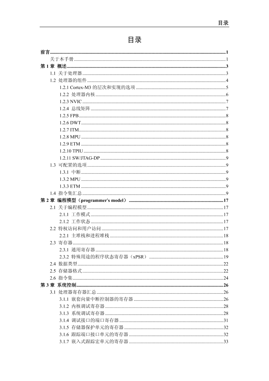 | 134 阅读本手册是关于 Cortex-M3 处理器的技术参考手册,是为基于 Cortex-M3 处理器来实现片上系统(SoC)器件的系统设计人员,系统整合人员,以及验证工程师而写的。