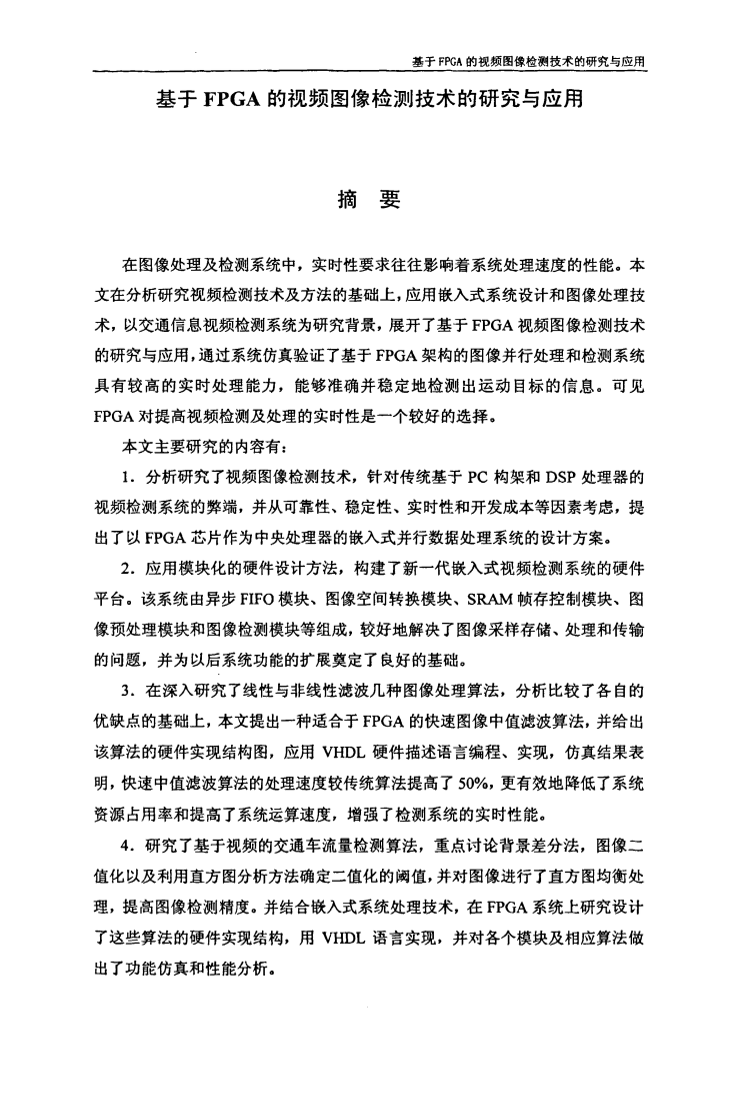 | 67 阅读本文在分析研究视频检测技术及方法的基础上,应用嵌入式系统设计和图像处理技术,以交通信息视频检测系统为研究背景,展开了基于FPGA视频图像检测技术的研究与应用。