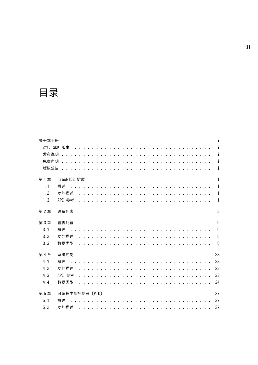 | 3 阅读本文档为用户提供基于 FreeRTOS SDK 开发时的编程指南。