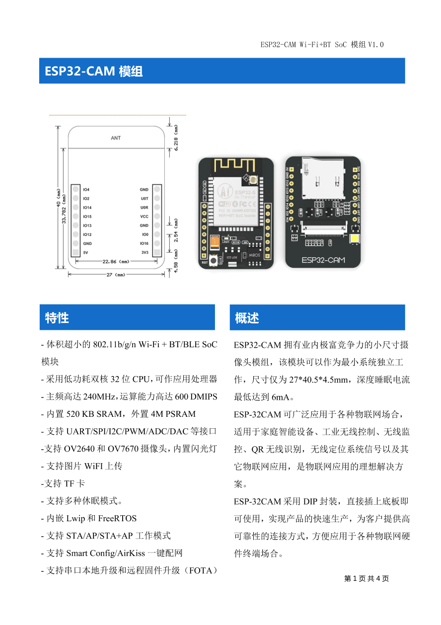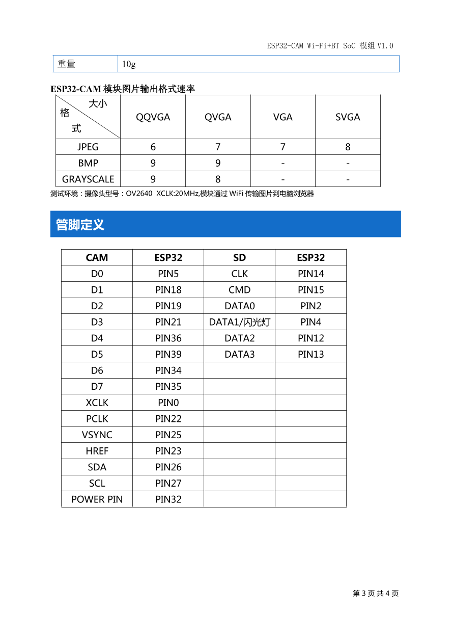 ESP32-Cam 规格书