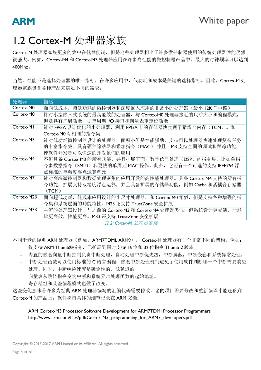 | 3 阅读ARM Cortex-M 处理器家族介绍和比较