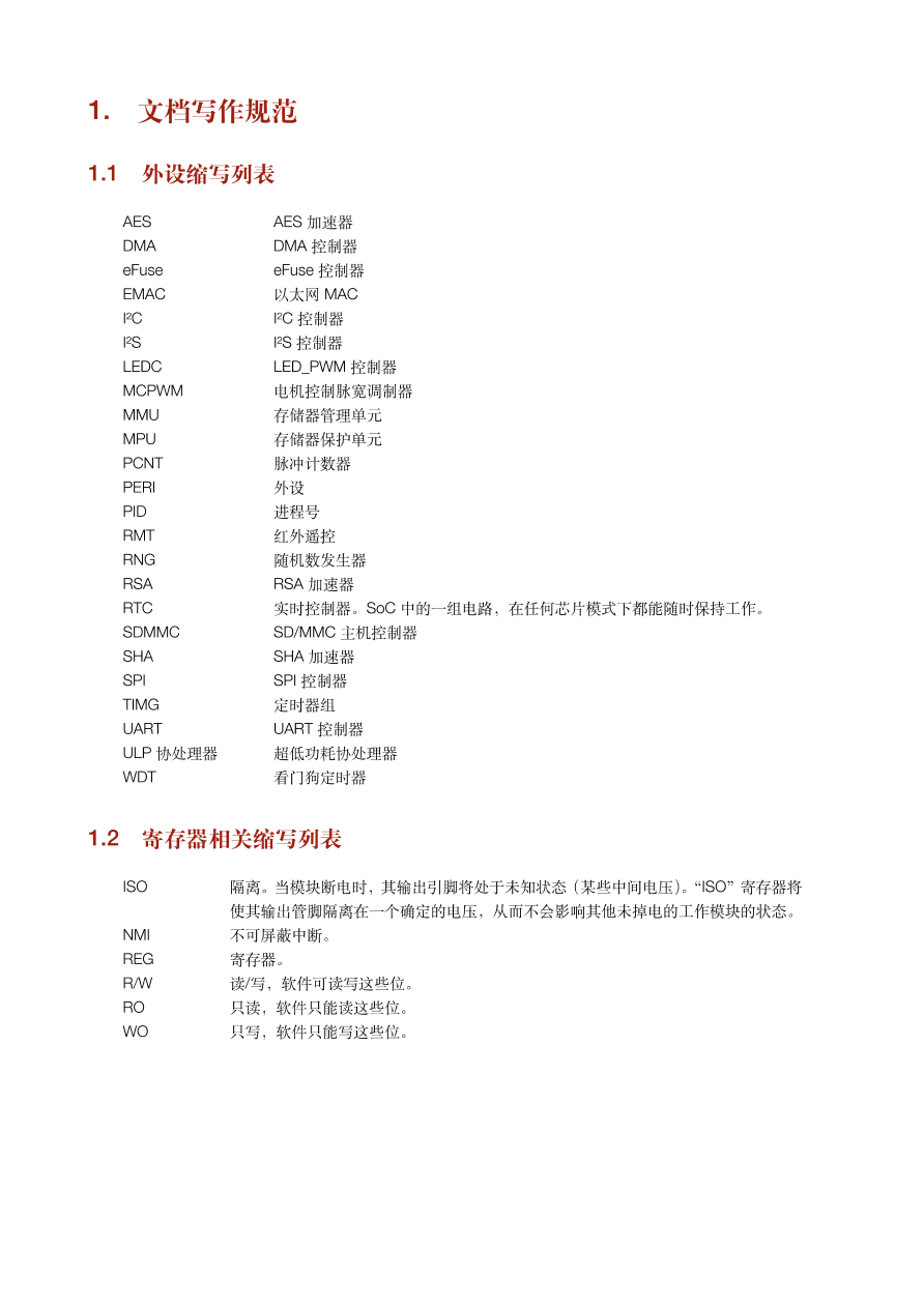 | 6 阅读本手册的目标读者群体是使用 ESP32 芯片的应用开发工程师。手册提供了关于 ESP32 的具体信息,包括各个功能模块的内部架构、功能描述和寄存器配置等。