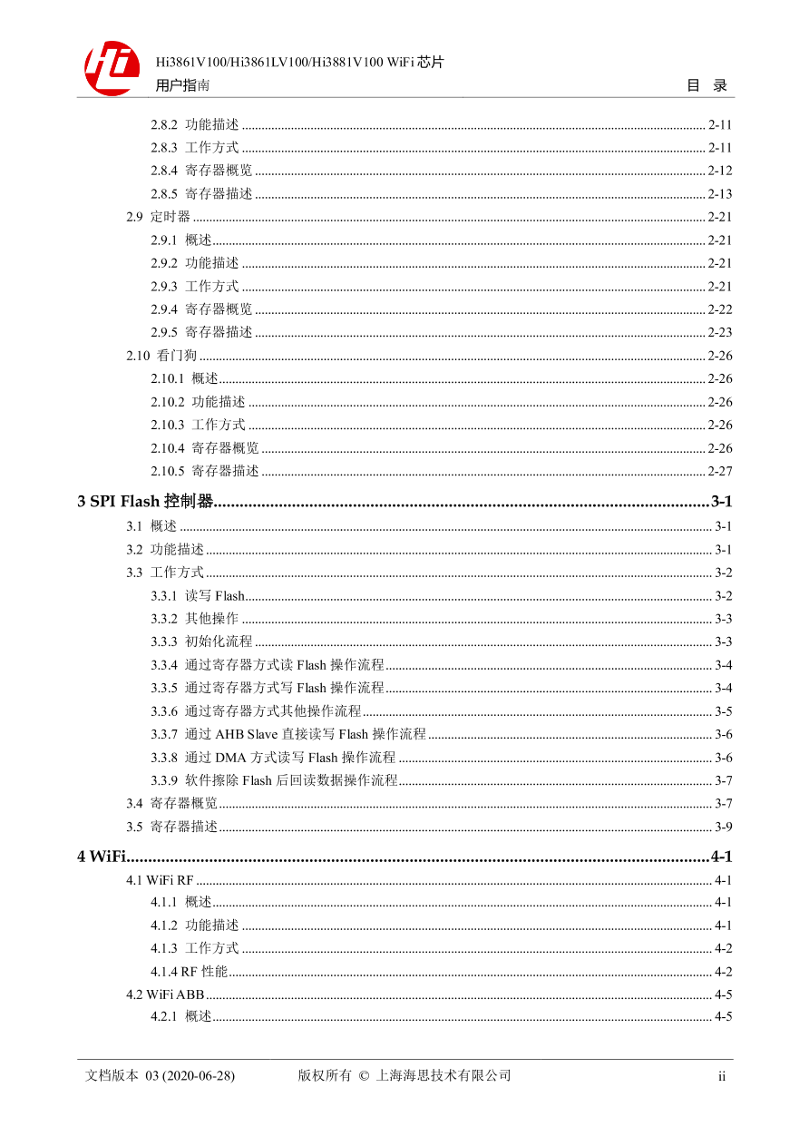 | 14 阅读本文档主要介绍 Hi3861V100、Hi3861LV100、Hi3881V100 芯片的各项基本功能,常见应用模式的配置方法。