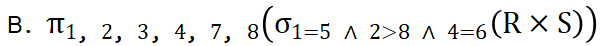 25) 给定关系R(A, B, C, D)和关系S(A, D, E, F),关系代数表达式